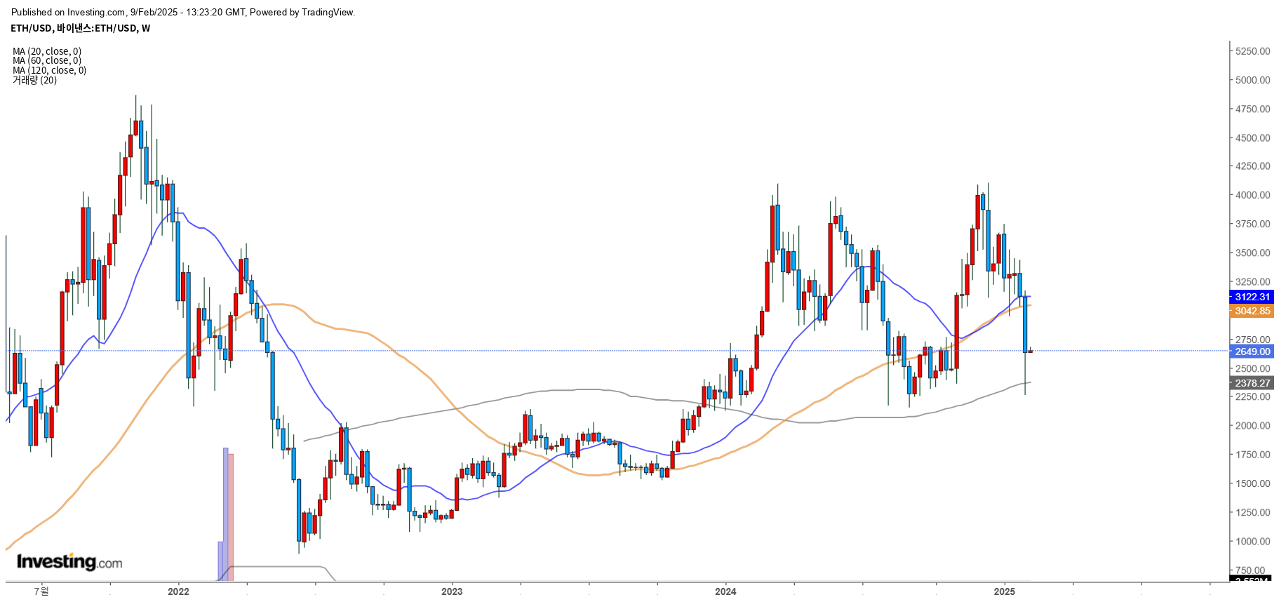 2200달러까지 내려갔다가 지금은 2600달러에서 횡보하고 있습니다.