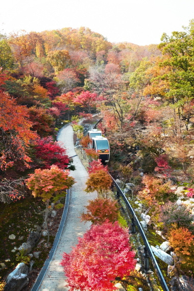 케이블카는 단풍이 절정인 가을철에 매우 인기 있는 교통수단입니다. 산책로가 길고 경사가 있어 케이블카를 이용하면 더 편하게 화담숲의 아름다움을 감상할 수 있습니다.